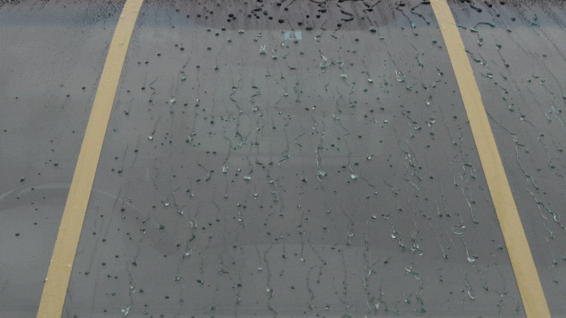 施工してからすぐ拭き上げた面です。ここもバチバチに撥水していますが、落ちていく水滴のウネウネが他の面よりも激しいように思えます。