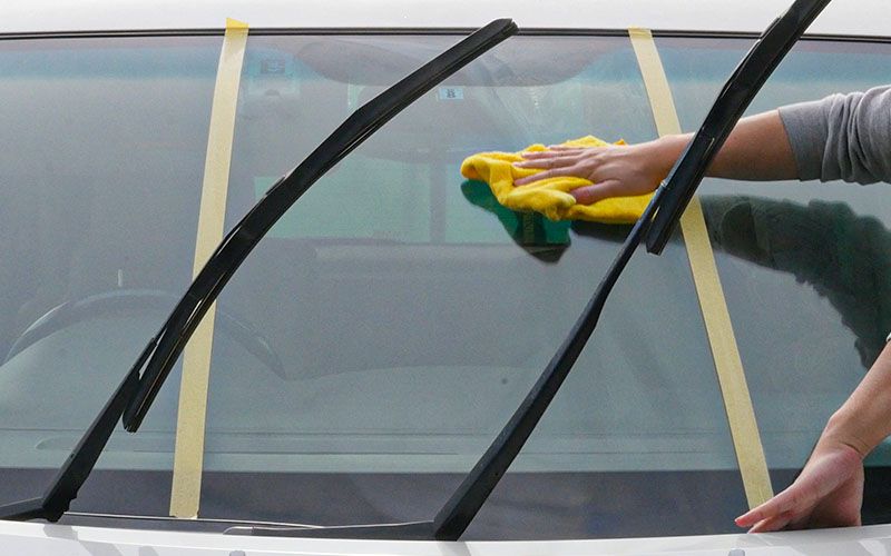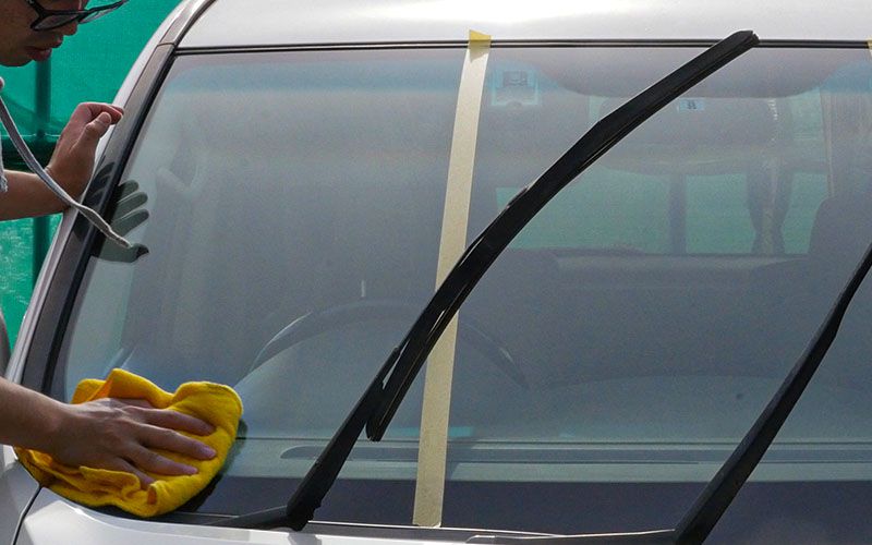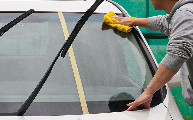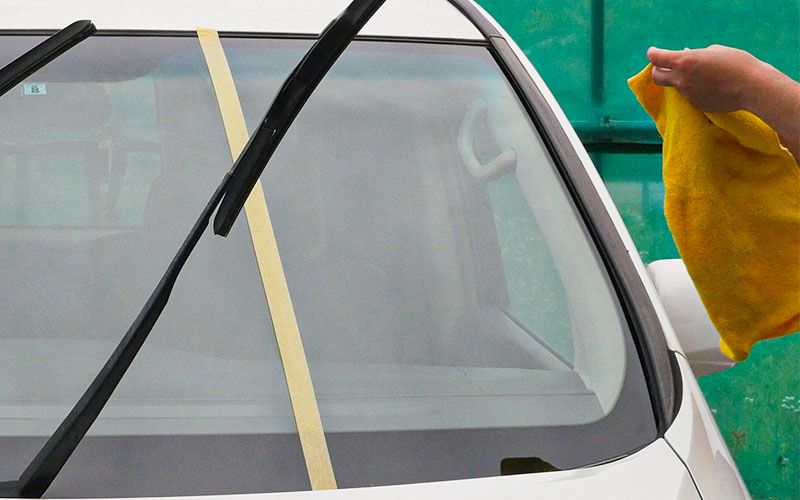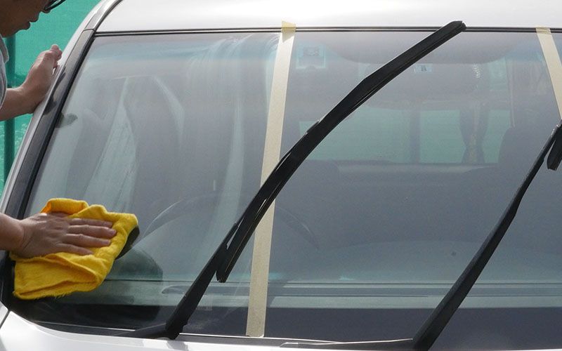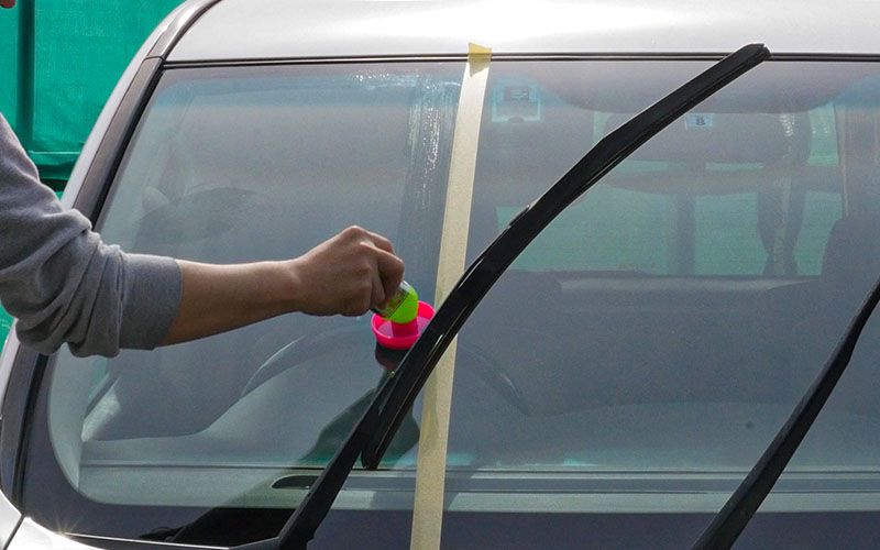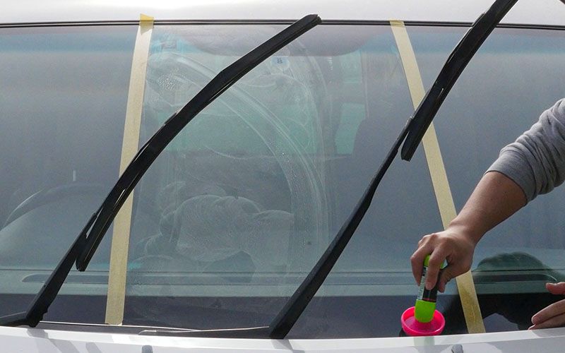 使用前にボトルをよく振り、フロントガラスの外面にヘッド部分を押し当てながら、ガラス面全体にムラなく塗布してください。