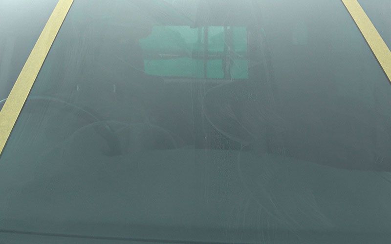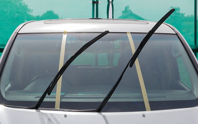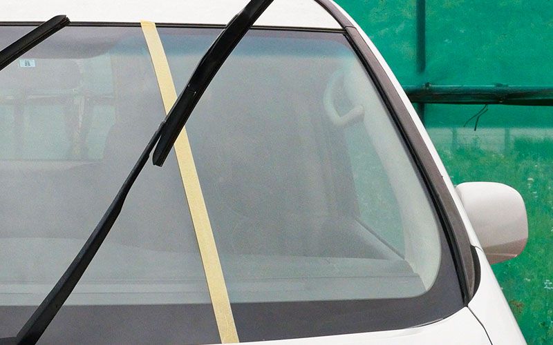 マスキングテープを貼って、フロントガラスを3等分にしました。