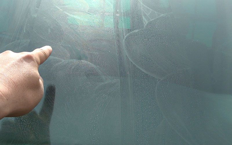 しかし、ガラスの表面が少しザラザラしていたのでウロコ除去剤でガラス面を整えてから施工していきます。一応、脱脂もしておきました。