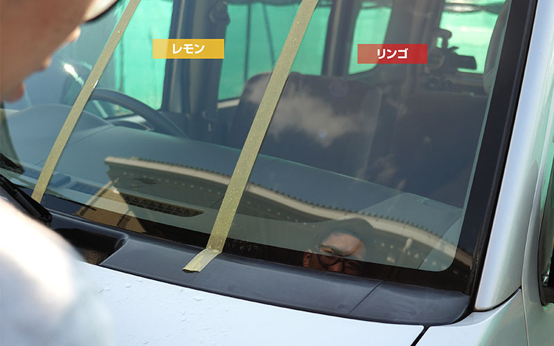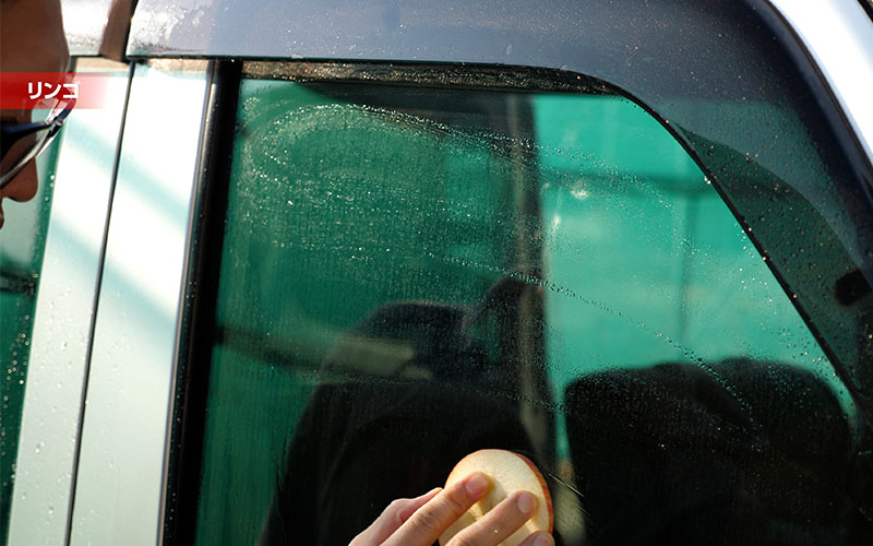 今回は視聴者さんに教えてもらった動画を参考に「リンゴ酸」が含まれている果物をフロントガラスに使ってみました。