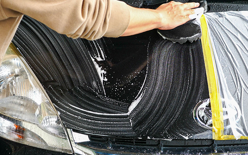 ボンネットの半面にリピカ『脱脂シャンプー』を施工