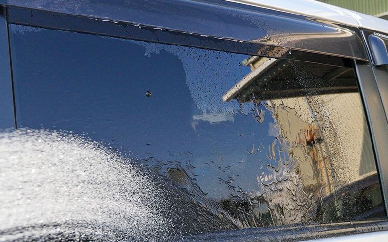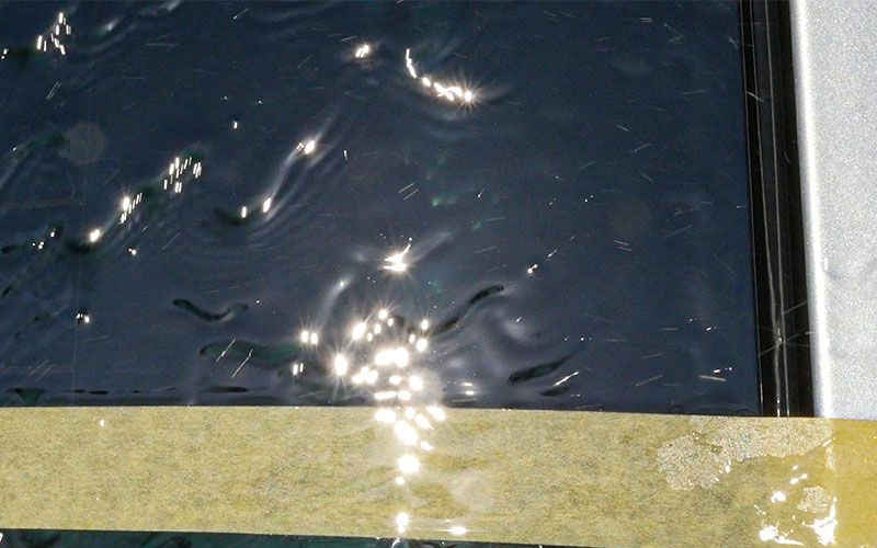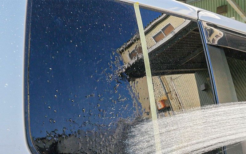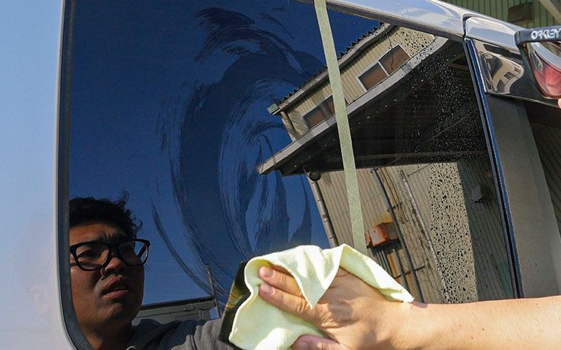 なぜなら、ガラス面が乾いた状態で施工しないといけないので、弾きがわからず、汚れが落とせているのかがわかりません。