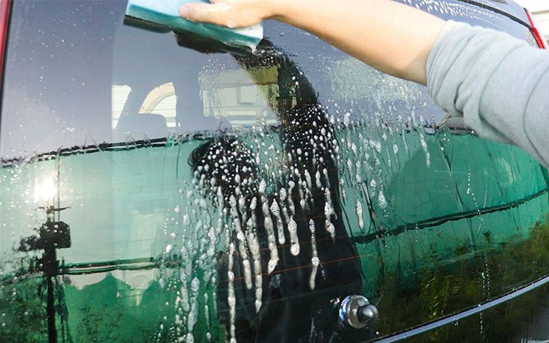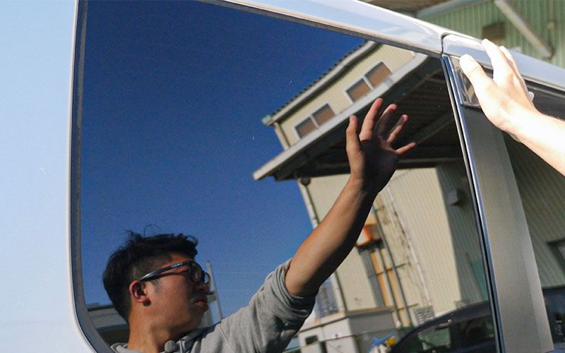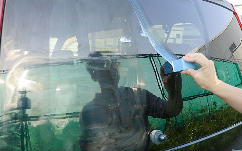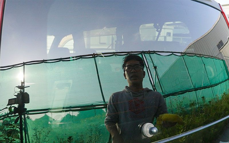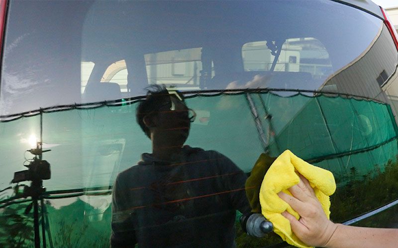 VOXIよりも施工後がわかりやすいと思ったので、車両を変えました。リアガラスに施工していきます。