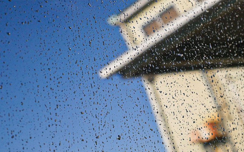【1】ガラスに付着したホコリや砂、泥汚れなどは、強い水流で洗い流すなどして完全に除去します。