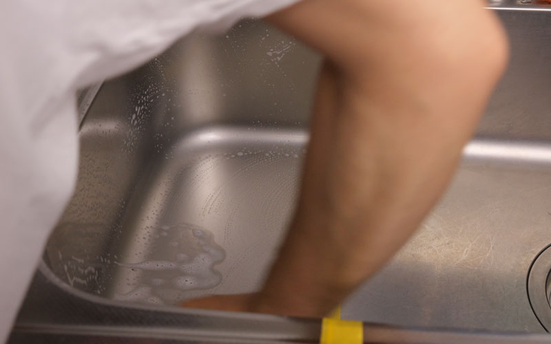 シンクの水アカを落とす