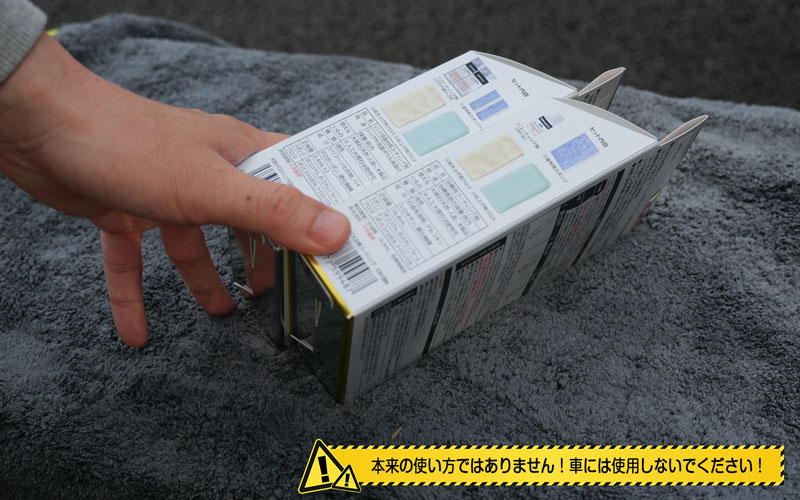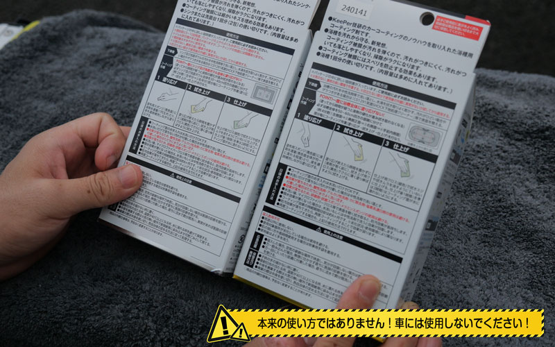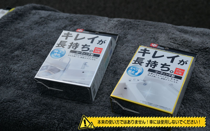 このコーティング剤、専用品として作られており、『バスタブ用』には滑り防止効果が、『シンク・洗面台用』には傷埋め効果があるとのことです。これをバスタブや洗面台に使ってみても面白くないかなと思いますが、実際に車に施工してみて、どうなるのか見ていきたいと思います。
