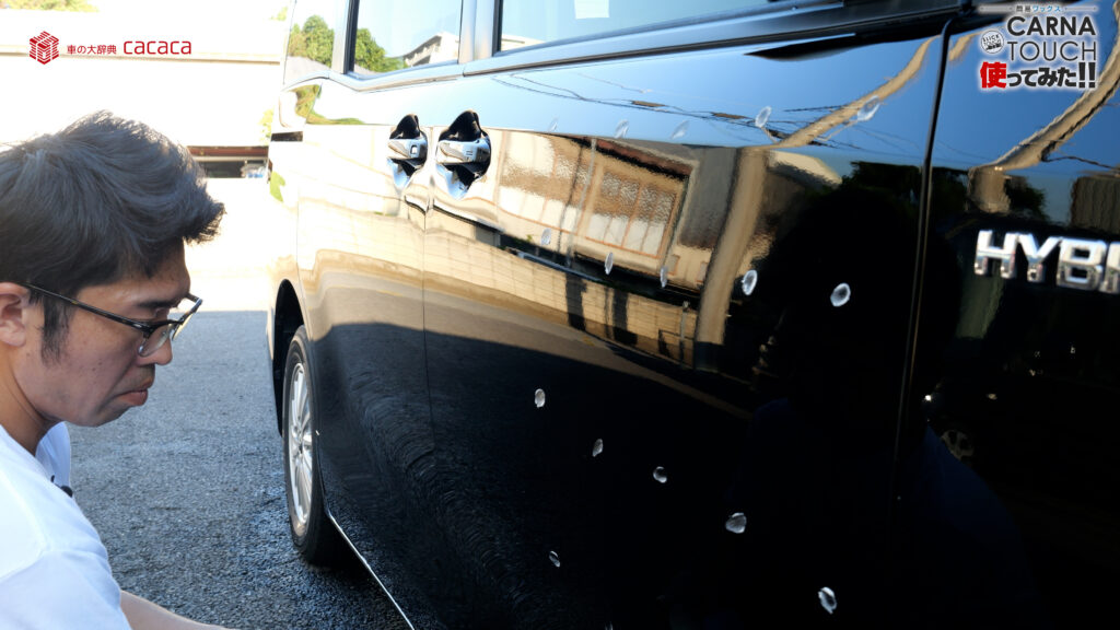 はい そうしたらまずは運転席側にスリックタッチを施工していこうと思います。こんな感じです。