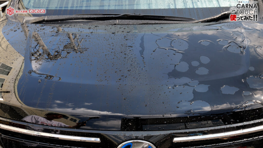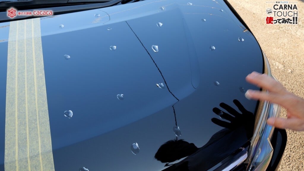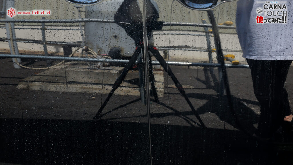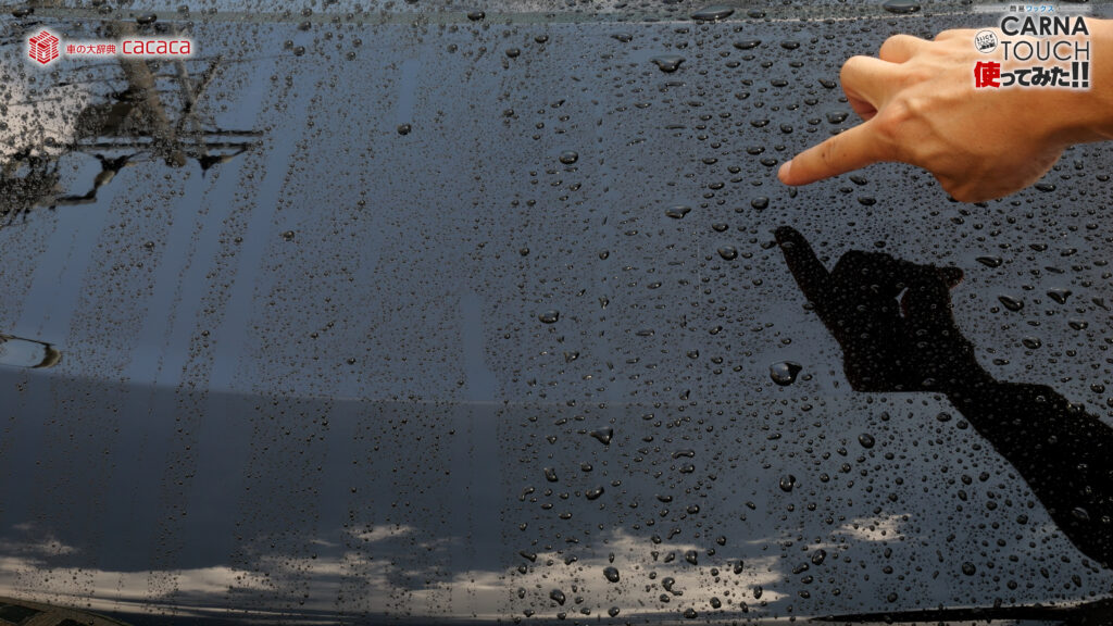 カルナタッチの方だとこれくらいの大きさの水滴結構あるんですが、撥水のスリックタッチの方は無いんですよ。