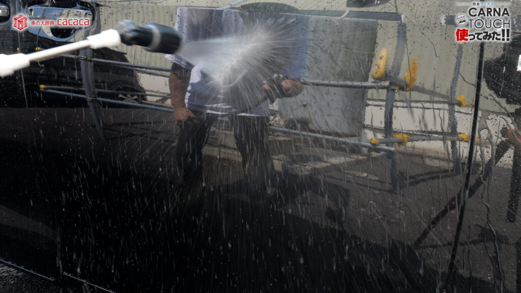 この水のかけ方のコツなんですが、普通にシャワーだとこう水滴は残りますよね。