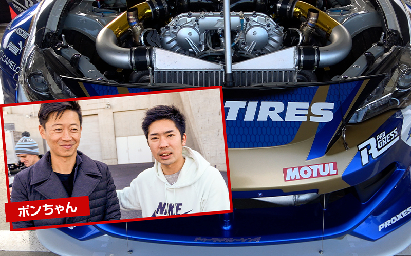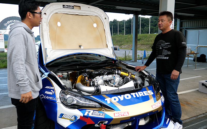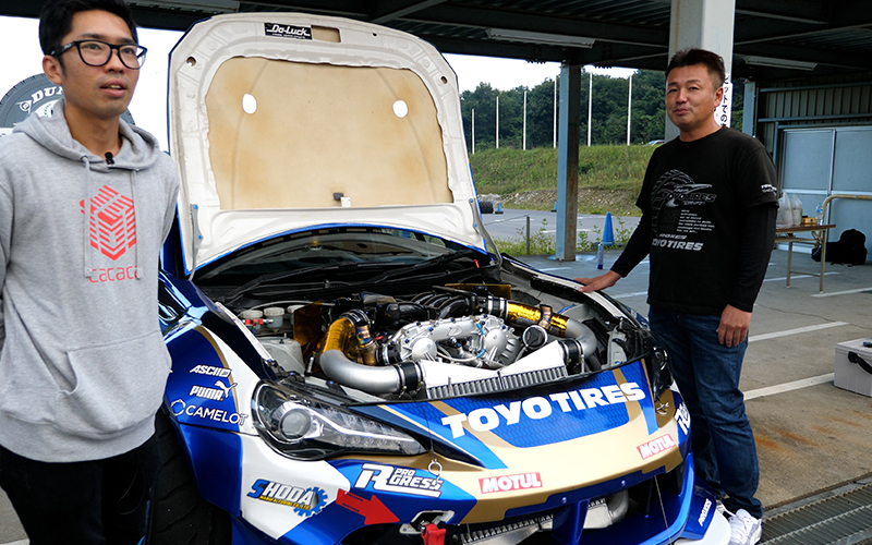 車を見て何となくすごいっていうのはわかると思うんですが…僕はそんなに車に詳しくないのでD1ドライバーの藤野選手に解説してもらおうと思います。