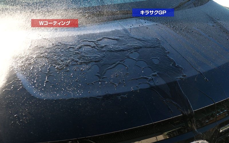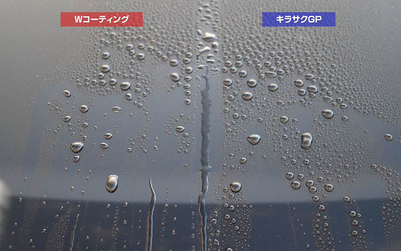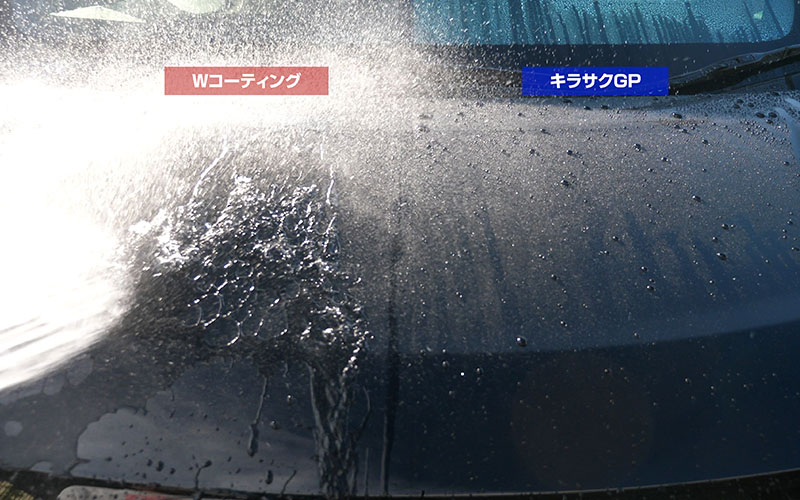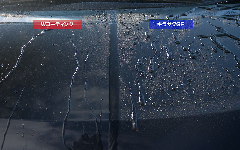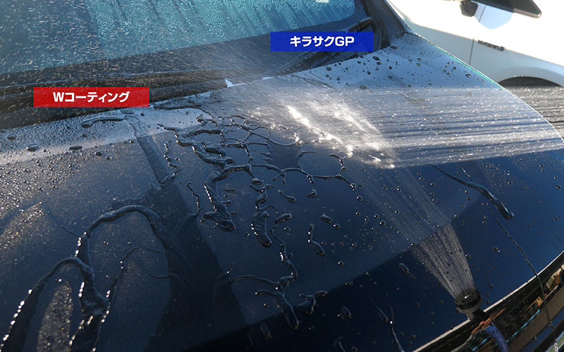 それはどちらにも言えることですが、『キラサクGP』の方が水の分裂が早いので、『Wコーティング』寄り『キラサクGP』の方が耐久性がありますね。