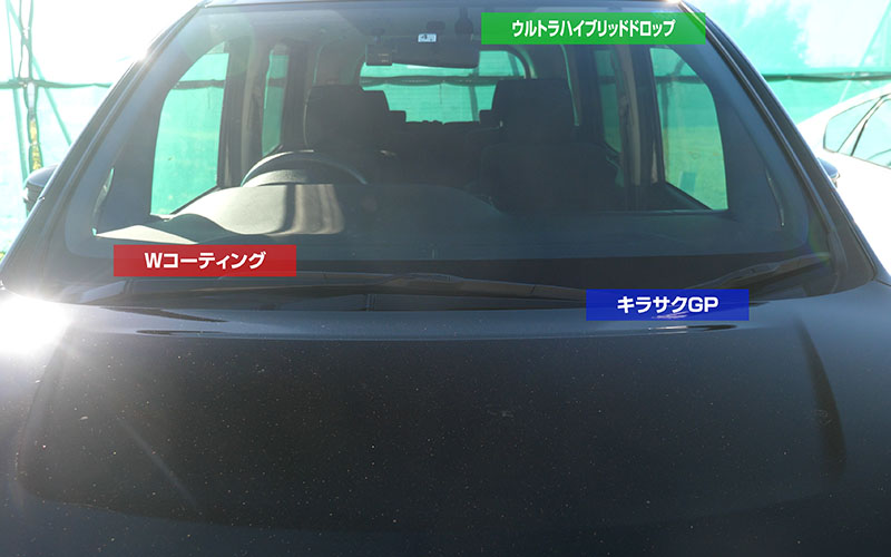 今回は以前に施工した『Wコーティング(ガラス&ボディ代表)』『キラサクGP(ボディ代表)』『ウルトラハイブリッドドロップ(ガラス代表)』の耐久性を見ていきました。