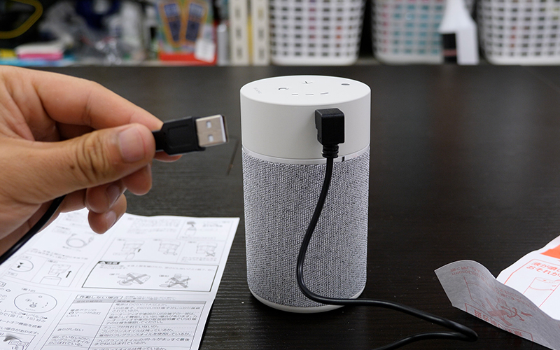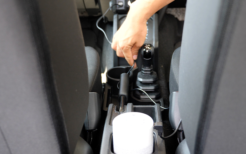 あとは、専用ケーブルを本体上部に挿し込み反対側を車のUSB電源に挿し込んだら準備完了です。