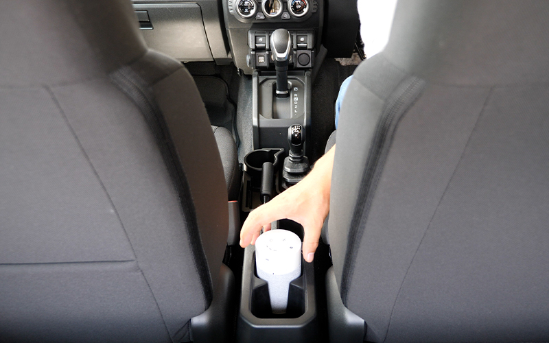 カーメイト『 ブラング 噴霧式 フレグランスディフューザー』をジムニーに置くとしたらこういった元々付いているドリンクホルダーが良いと思います。