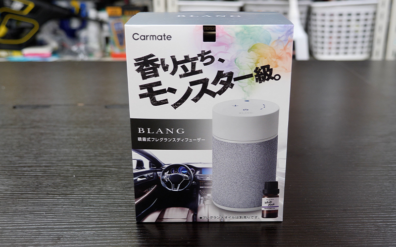 香り立ちモンスター級と書かれたパッケージの箱が目印のカーメイト 『ブラング 噴霧式 フレグランスディフューザー』です。