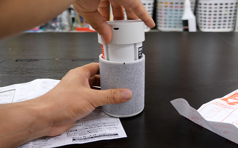 専用のフレグランスオイルを取り付けた状態で、再び下部分に合わせて回します。