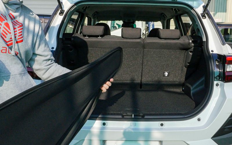 僕が持っている黒い物は、トノカバーといって荷室を隠すことができ外から見えないため車上荒らし予防に効果的です。これはどのグレードでも付けることができるオプション装備になっています。