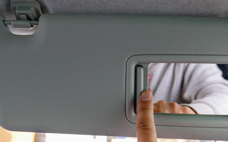 サンバイザーを降ろすと小さな窓がありそれをスライドさせて開けるとミラーが付いています。