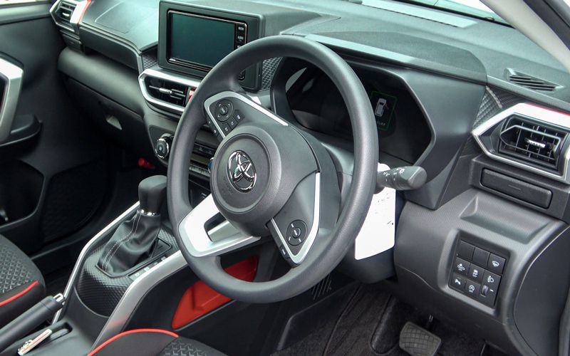 ライズを見た感想は、結構好きかもしれないです。ヘッドライトが今風でかっこいいし、小ぶりなんだけどもズッシリとした感じの見た目で特に僕は後ろから見た感じが好きです。価格帯が170万、上が240万ぐらいということで考えた時に最初はアリかもしれないと思ったのですが、内装が少し安っぽいと感じてしまいました。