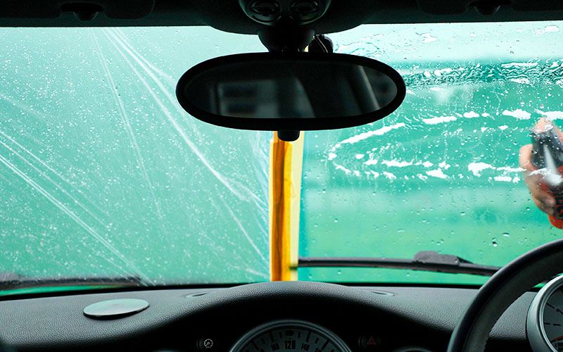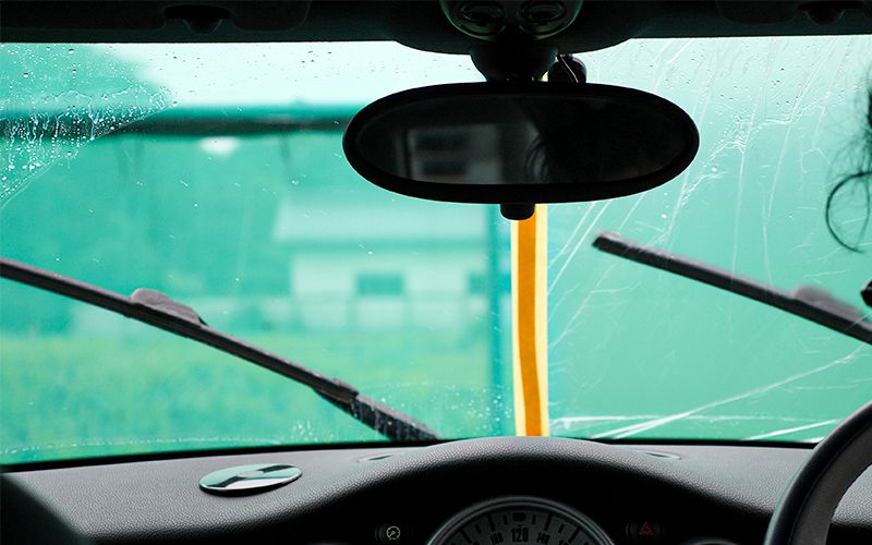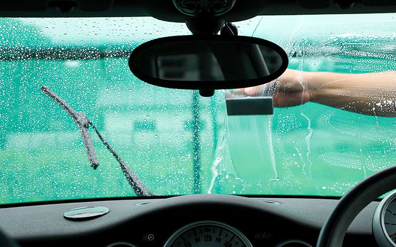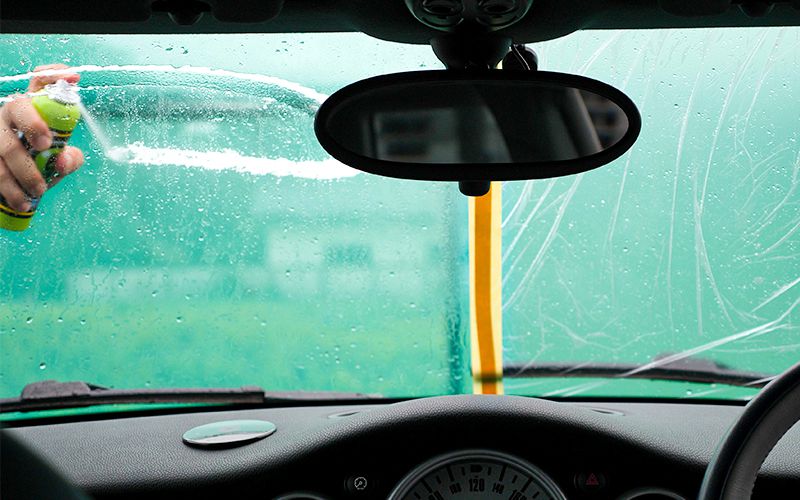 ワイパーを動かしながらフロントガラスに約3秒間スプレーしてください。