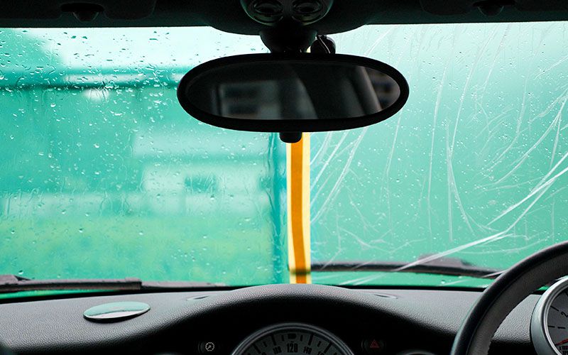 雨が降っているので、ガラス面を乾かしてフロントガラスを養生します。