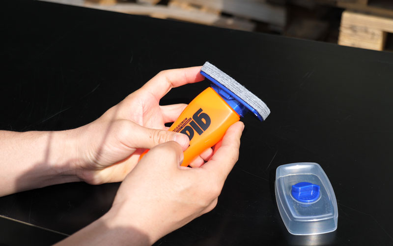 どの商品にも言えるんですが、新品の状態だとフェルト面に撥水剤が染み込んでいないのでガラス面の同じところで何回かグルグルしてフェルト面に撥水剤を染み込ませてください。