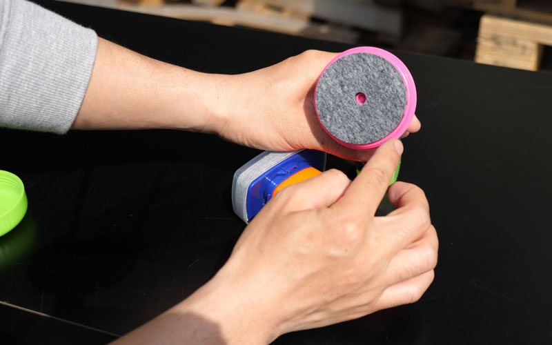 あと、比べてみて気が付いたんですが、『ハイブリッドストロングα』より『ガラコDX』の方がフェルト面が分厚いです。これも施工に影響してきそうです。