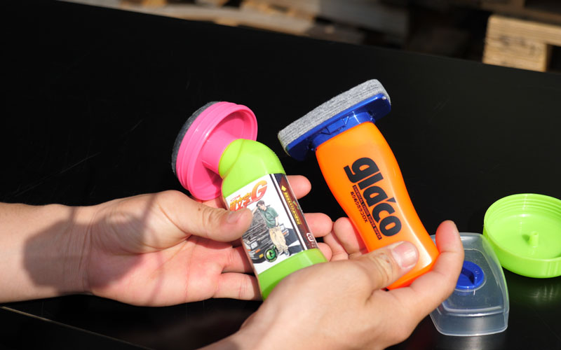 最初この商品を見た時に『ガラコ塗り塗りコンパウンド』と同じ容器じゃん! と思ったのですが、まさかの首を振るっていう。笑