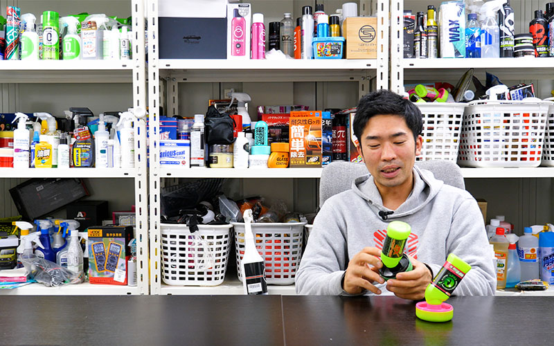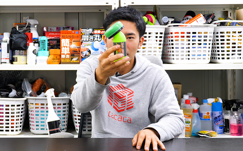 これはクリンビュー『ガラスコートX2ストロング』というガラス用の撥水剤です。父の会社に行った時、ポツンと置いてあったので「ちょうだいちょうだい!」って言ってもらいました。