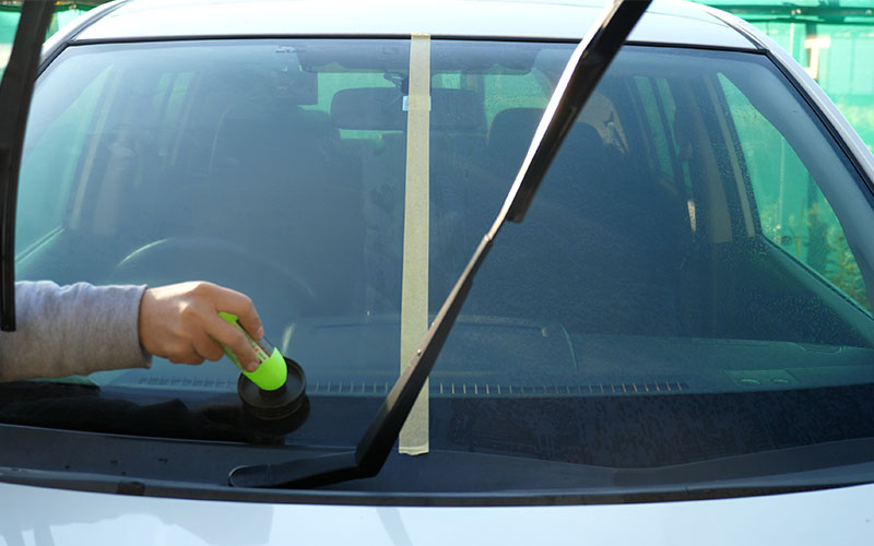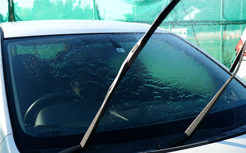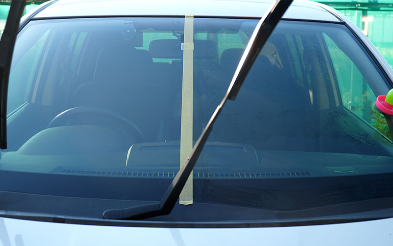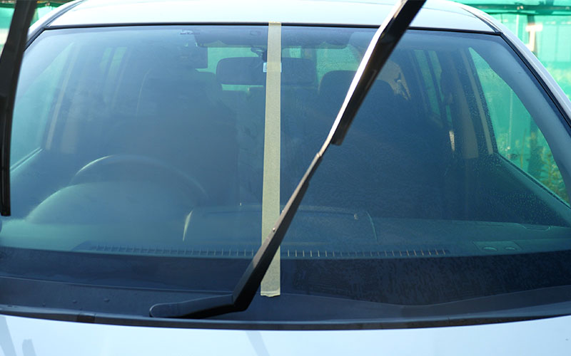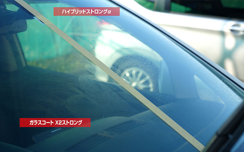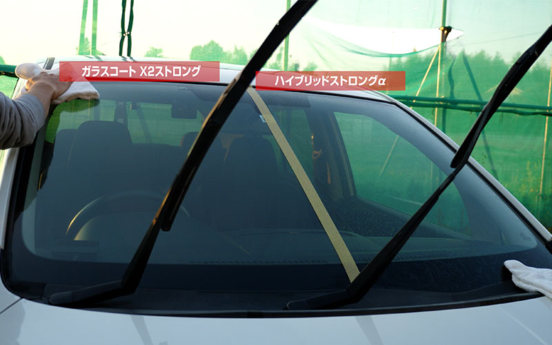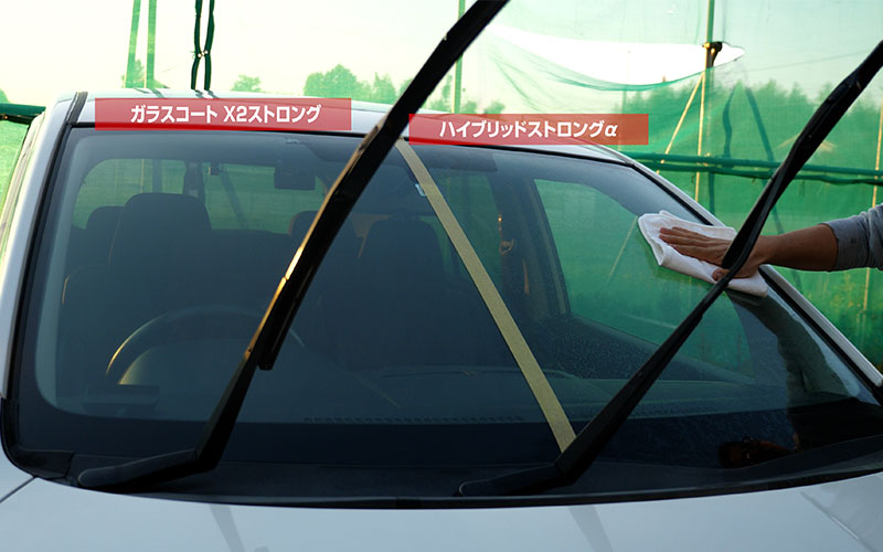 フロントガラスに『ガラスコートX2ストロング』と『ハイブリッドストロングα』を施工する