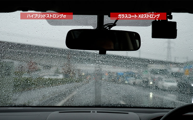 施工してから10日が経過し、雨が降ってきました。下道と高速道路を走行して、撥水力の違いを見ていきたいと思います。