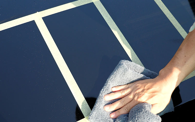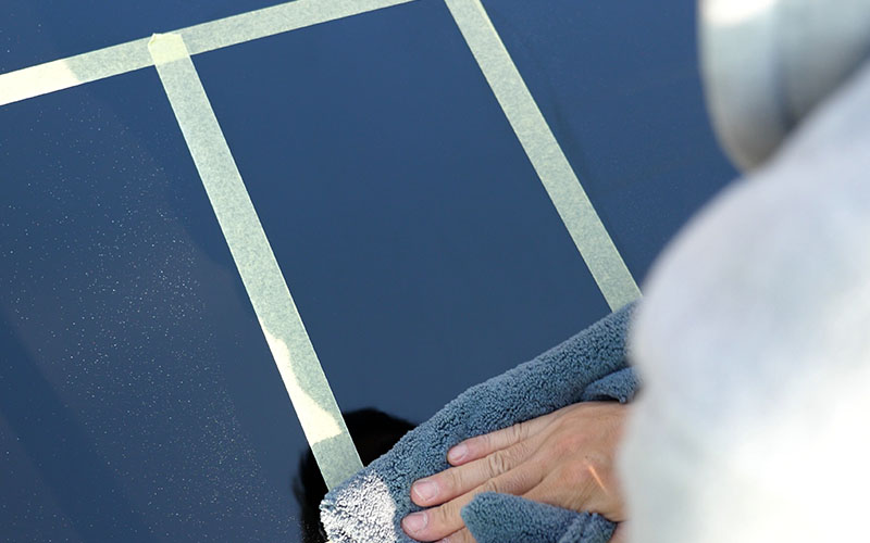 バフ掛けが終わったのでコンパウンドを拭いていきます。