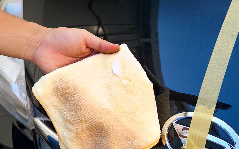 タオルにちょっとだけ『煌ブラックエグゼ』を付けて塗り込んでいきます。