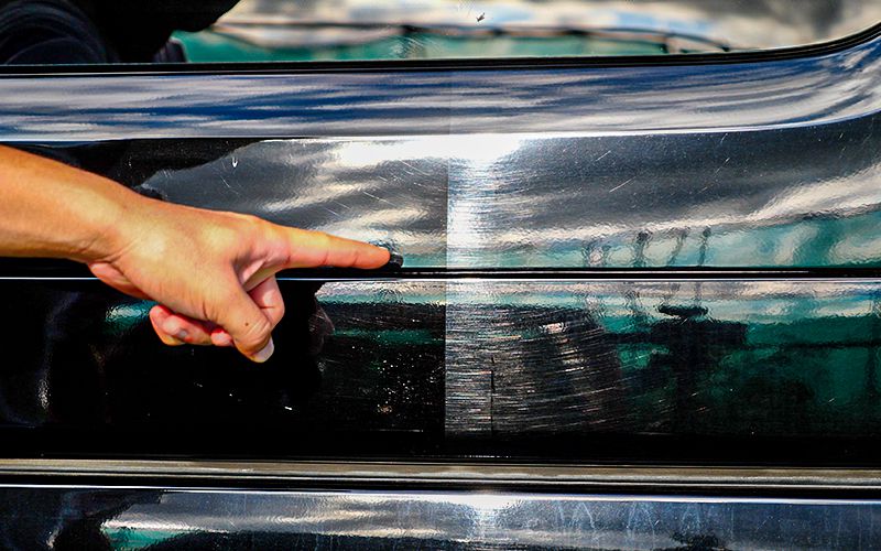 洗車キズの状態はこんな感じ。光の当たり方によって、ボディ全体で薄い線キズが見られます。これがどこまで軽減されるかを見ていきます。