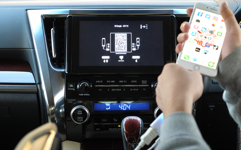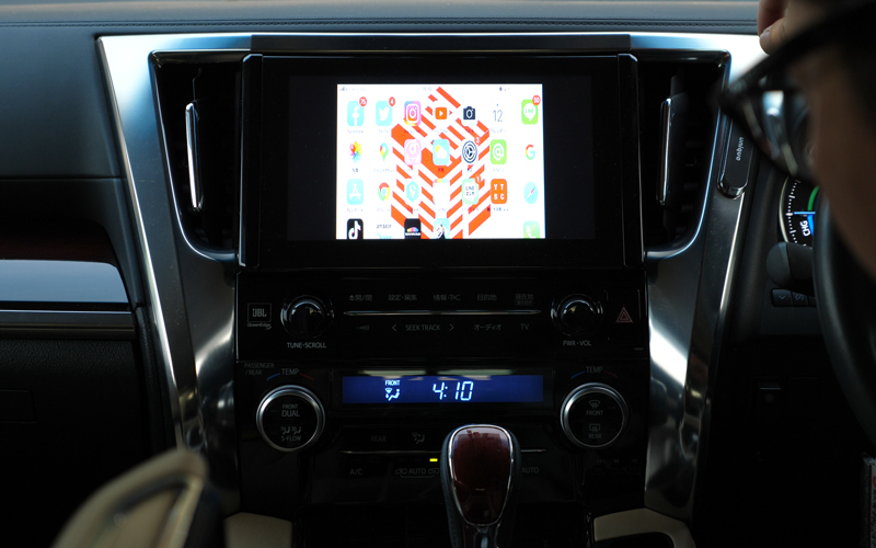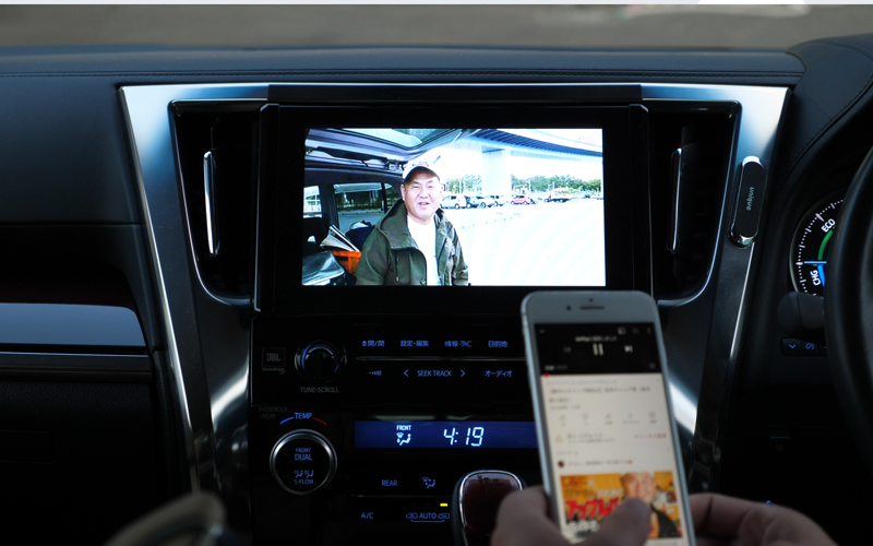 続いて、スマホの画面を純正ナビに映し出す方法ですが、これも車両によって必要になってくるものが違います。今回は外部入力がコンソールボックスの中にあったのでナビを外すことなく作業できました。