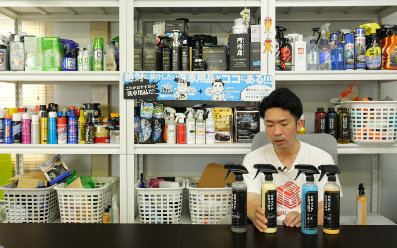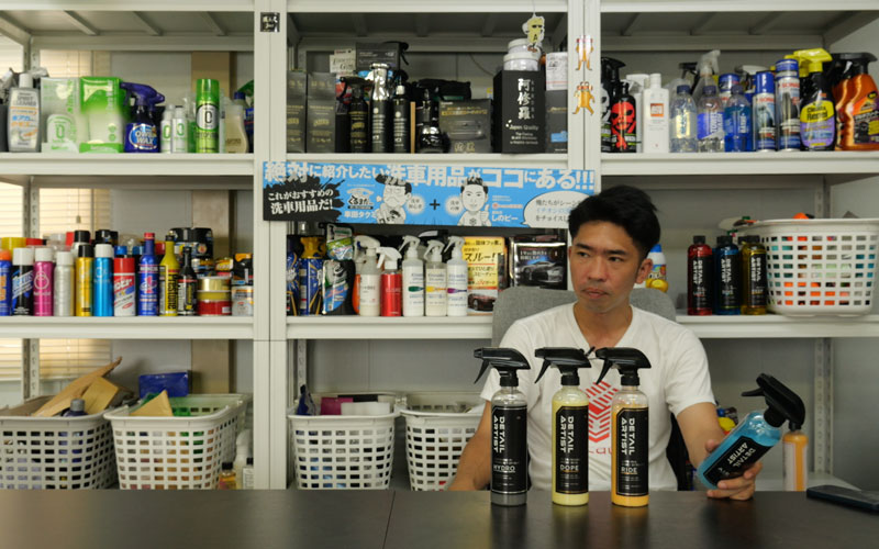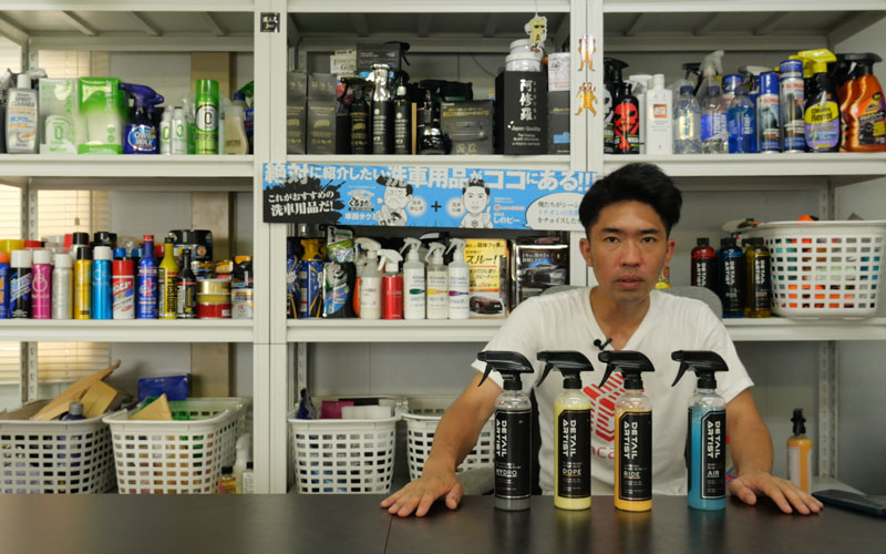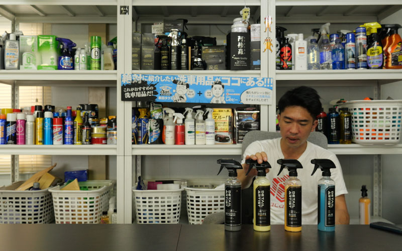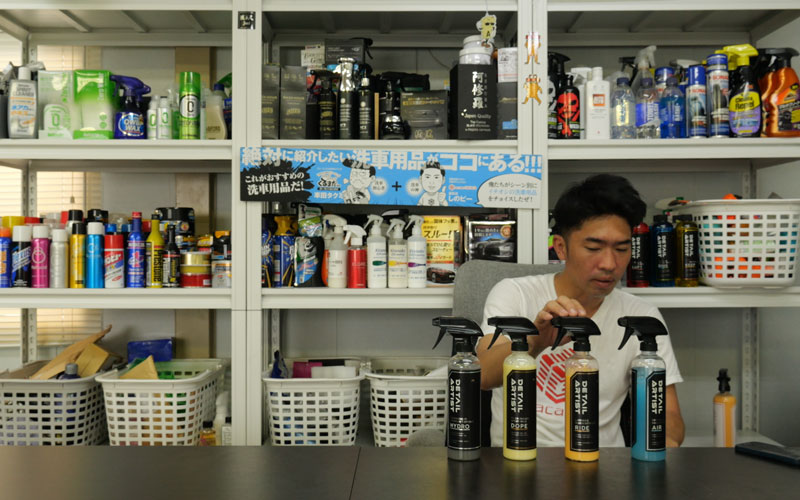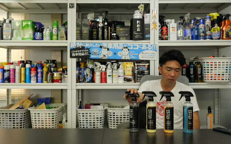 商品の方を簡単に説明すると、『RIDE』とか『AIR』は、QD(クイックディテーラー)、『DOPE』はスプレーワックス、『HYDRO』はトップコートになります。