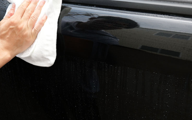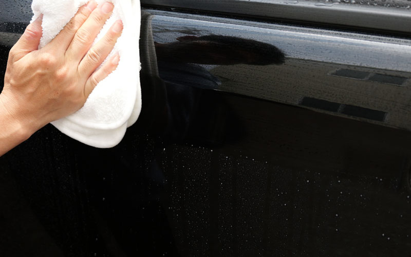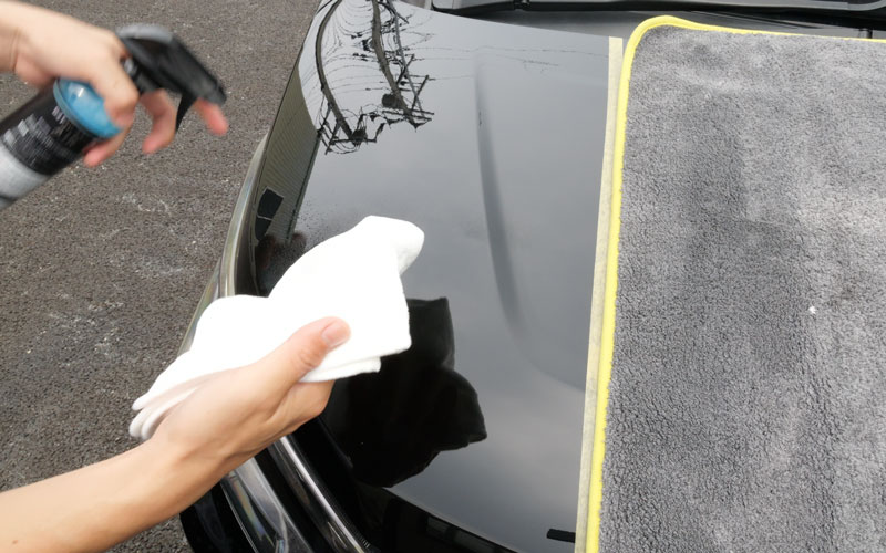 ② クイックディテーラーをパネルかクロスに2、3プッシュし拭き上げます。