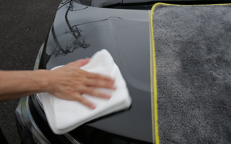 普段、大判クロスを使用しているので正直ドライング補助機能が欲しいと思ったことがないのですが、小さめのマイクロファイバークロスを何枚か用意して車を拭いている人もいると思うので検証していきます。
