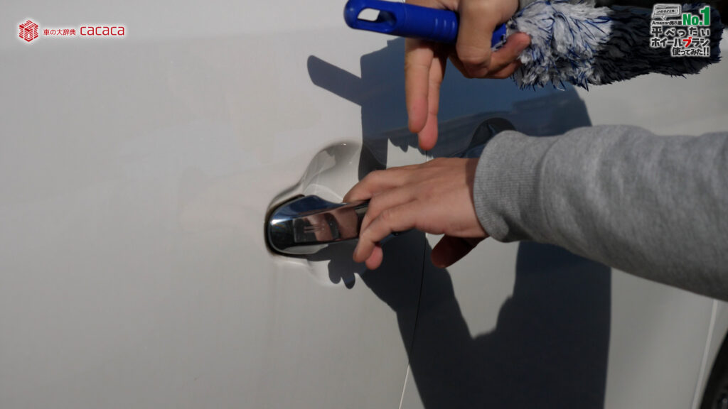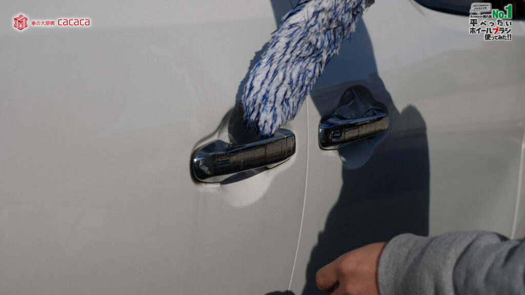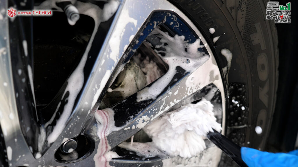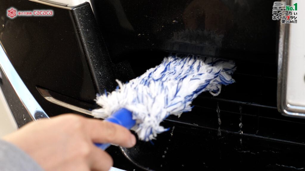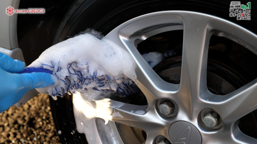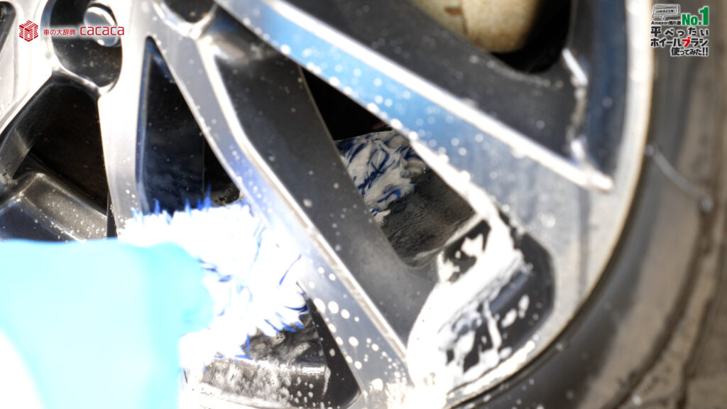 これを吹きかけた後、ブラシにカーシャンプーを付けて洗っていきます。