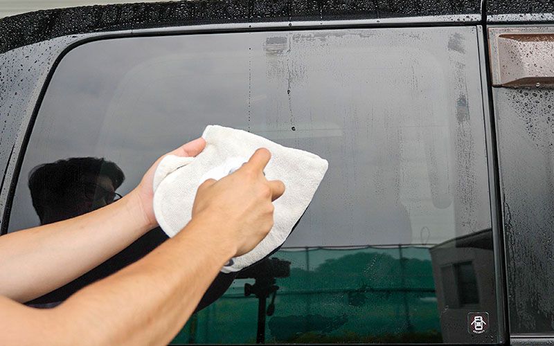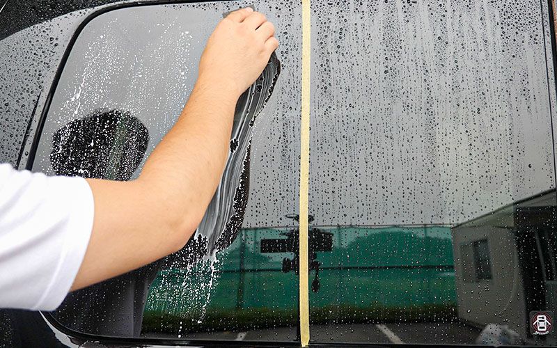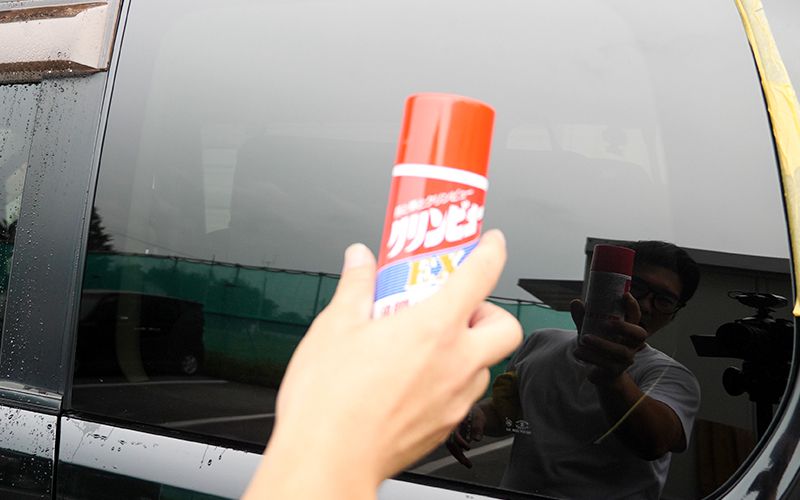 まずは『車窓ギラギラ汚れクレンザー』を使って、親水状態にしていきます。