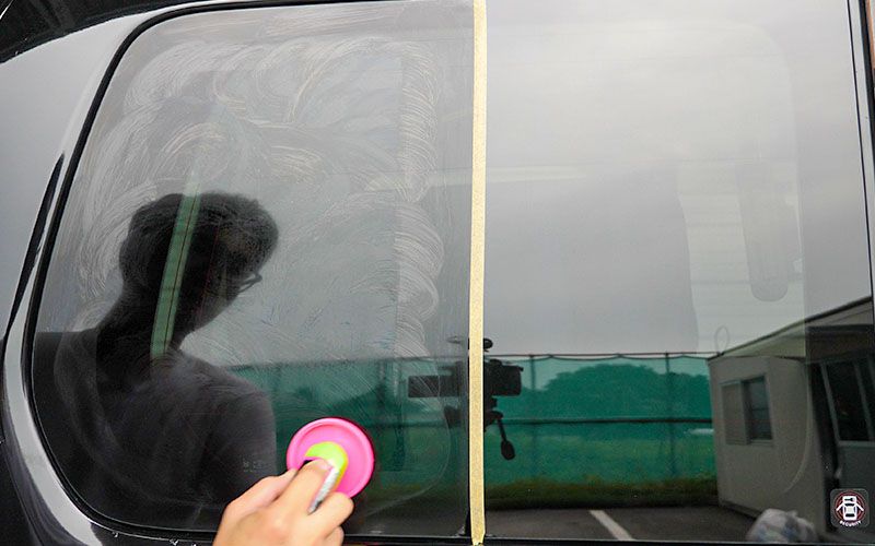 油膜が取れているのかもよくわからないし、右側を重点的に施工してみます。