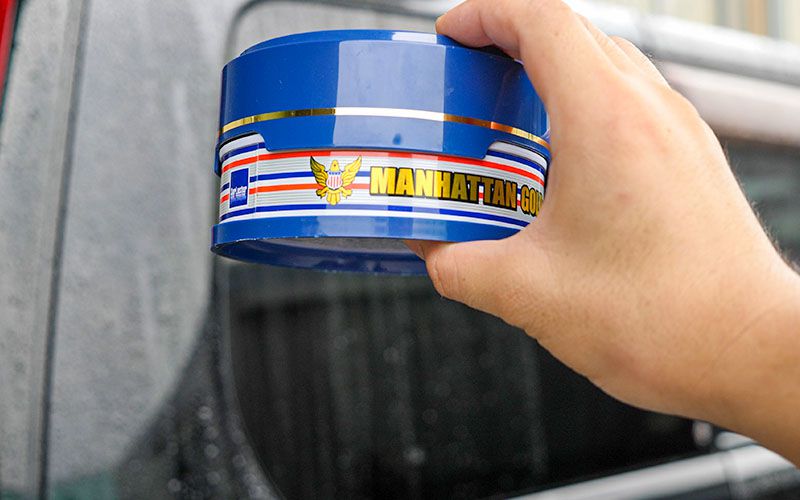 油膜をワックスで代用できるんじゃないかと思ったので、シュアラスターの『マンハッタンゴールド』を全面に塗っていきます!
