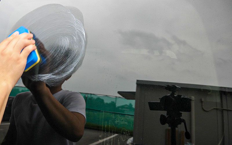 ということで使い方を理解したので、さっそく油膜が残っているガラスに親水セットを使用したら、どのようになるのかを見て行きます!