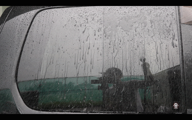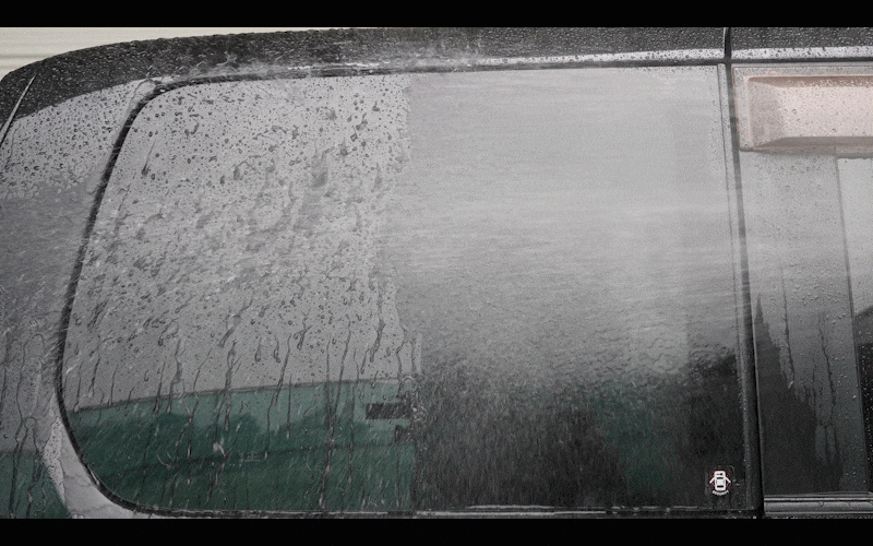 やっぱりガラス面が乾いた状態の施工だと、この時点で油膜が残っていても弾いてくれないので、落とせているのかわかりません。これはかなり不便だな~。