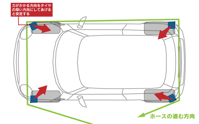 でもそんなことをしたらタイヤからホースが外れた拍子に勢い余ってボディを強打……車も傷むし、心も痛む――なんてことも。