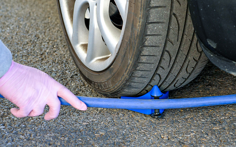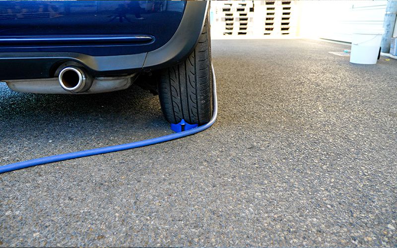 最後に忘れてはいけないのが取り外し。『ホースガードローラー』を置いたことを忘れて車を動かしてしまうと、踏みつけて壊してしまうし、場合によってはタイヤまで痛めかねません。
