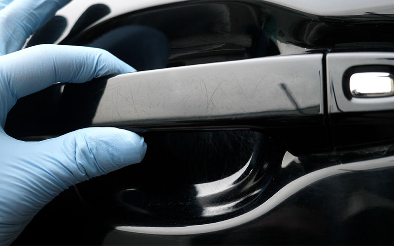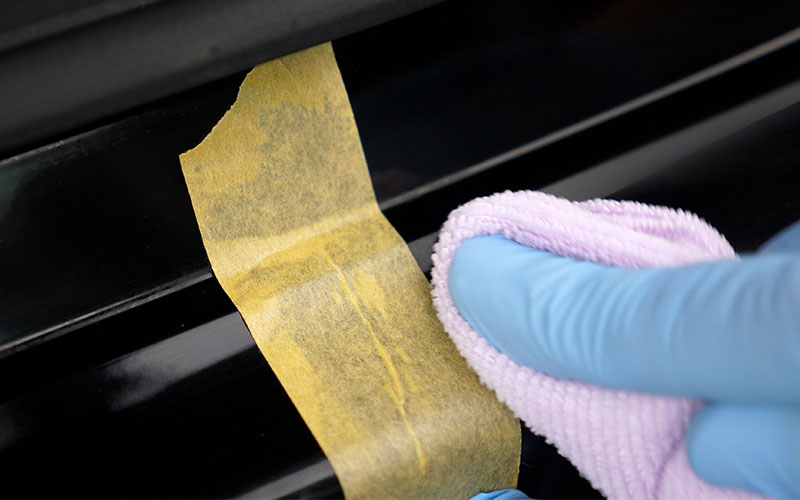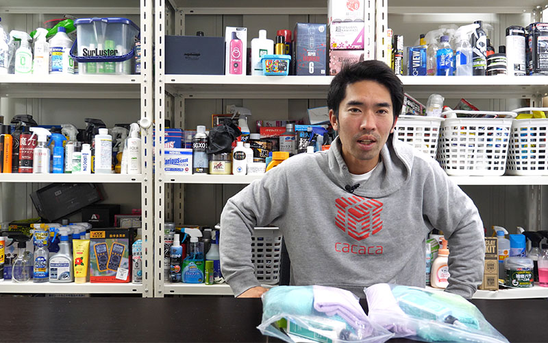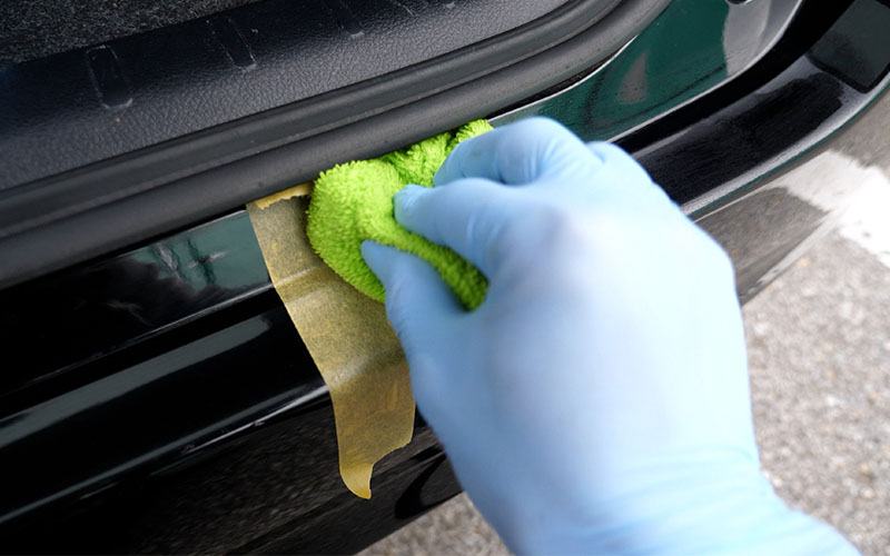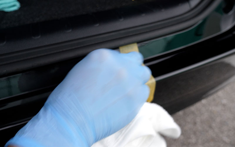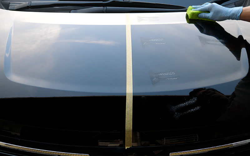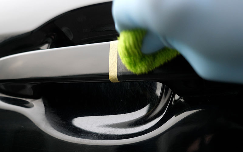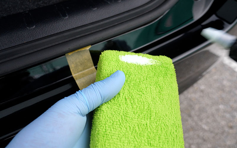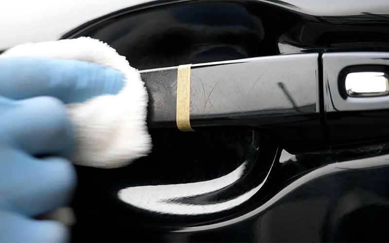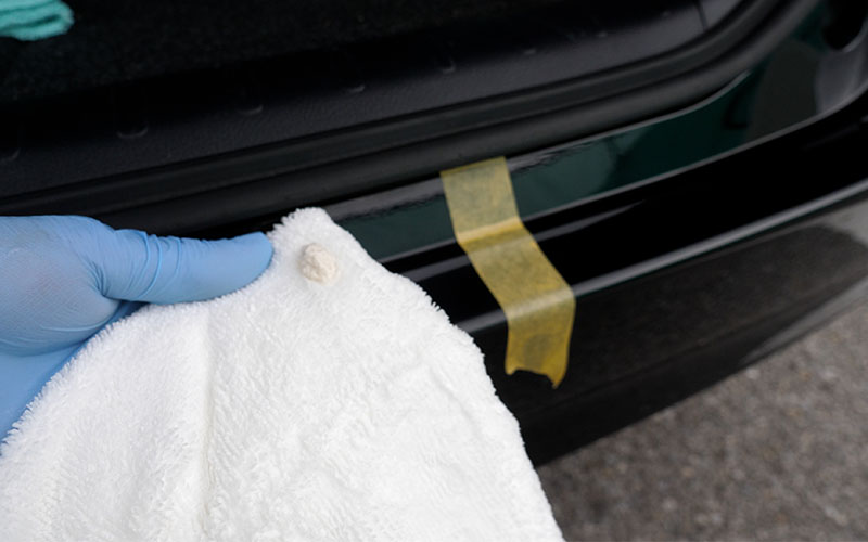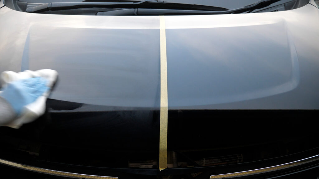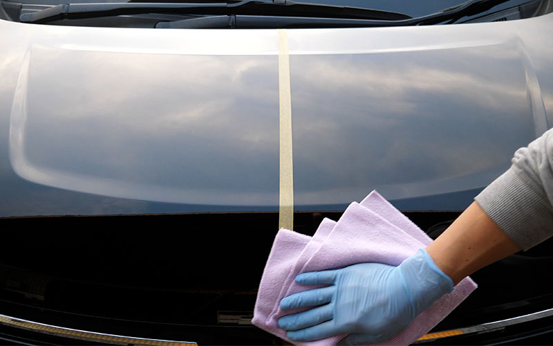 ①あらかじめ洗車をして汚れを落とし水滴を拭き取る(必要によっては鉄粉除去などを行う)