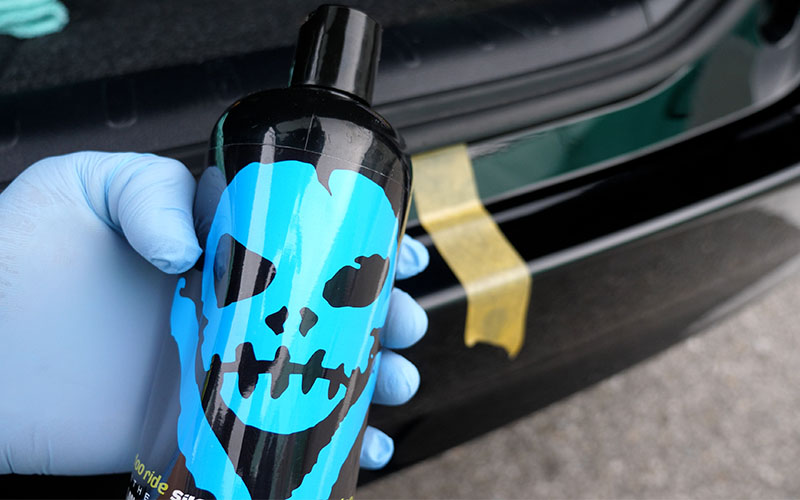 線傷や水アカが付いているリアバンパーにBASEを施工していきます。