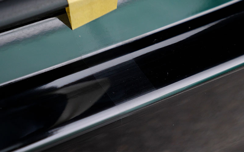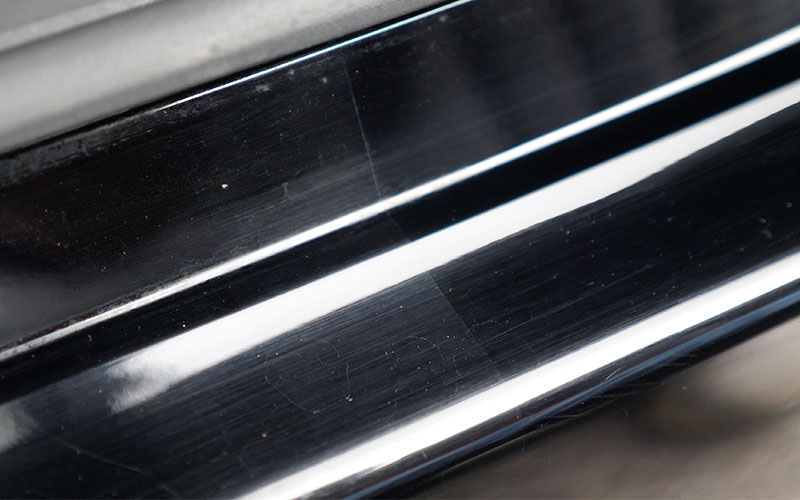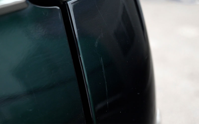 マスキングテープを剝がしました。艶が出て先ほどより傷が目立たなくなっています。